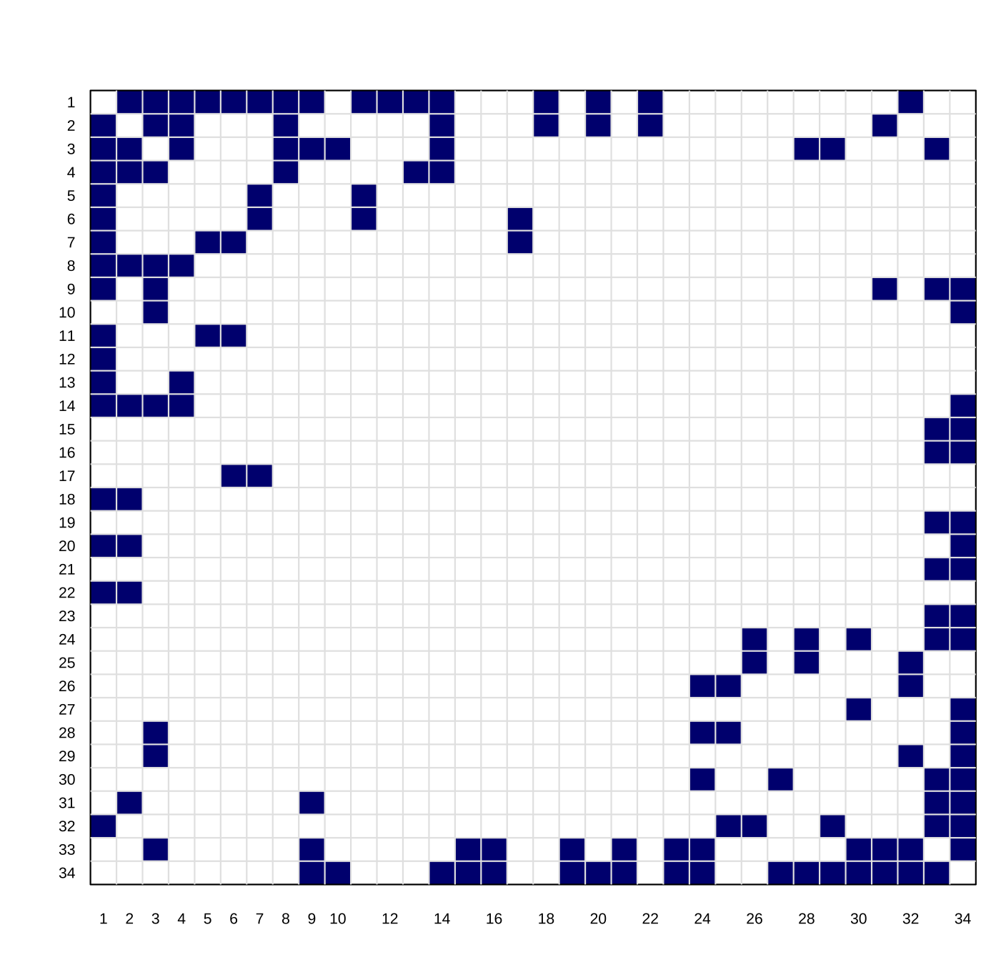 - 节点 (Nodes):34 个。代表俱乐部的 34 名成员。