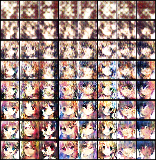 迭代 40 轮,我们抽取了其中的一些轮次,看同样的参数下生成图片的变化情况: