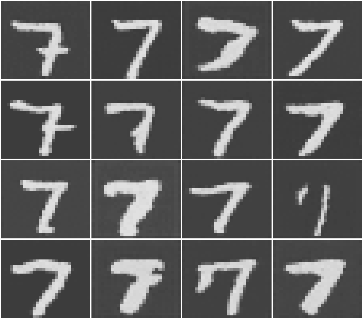 pred_noise <- noise_uncond + w * (noise_cond - noise_uncond)当我们把 target_digit 设为 7 并设置引导尺度 \(w=2.0\) 时,模型生成的图像如下所示: