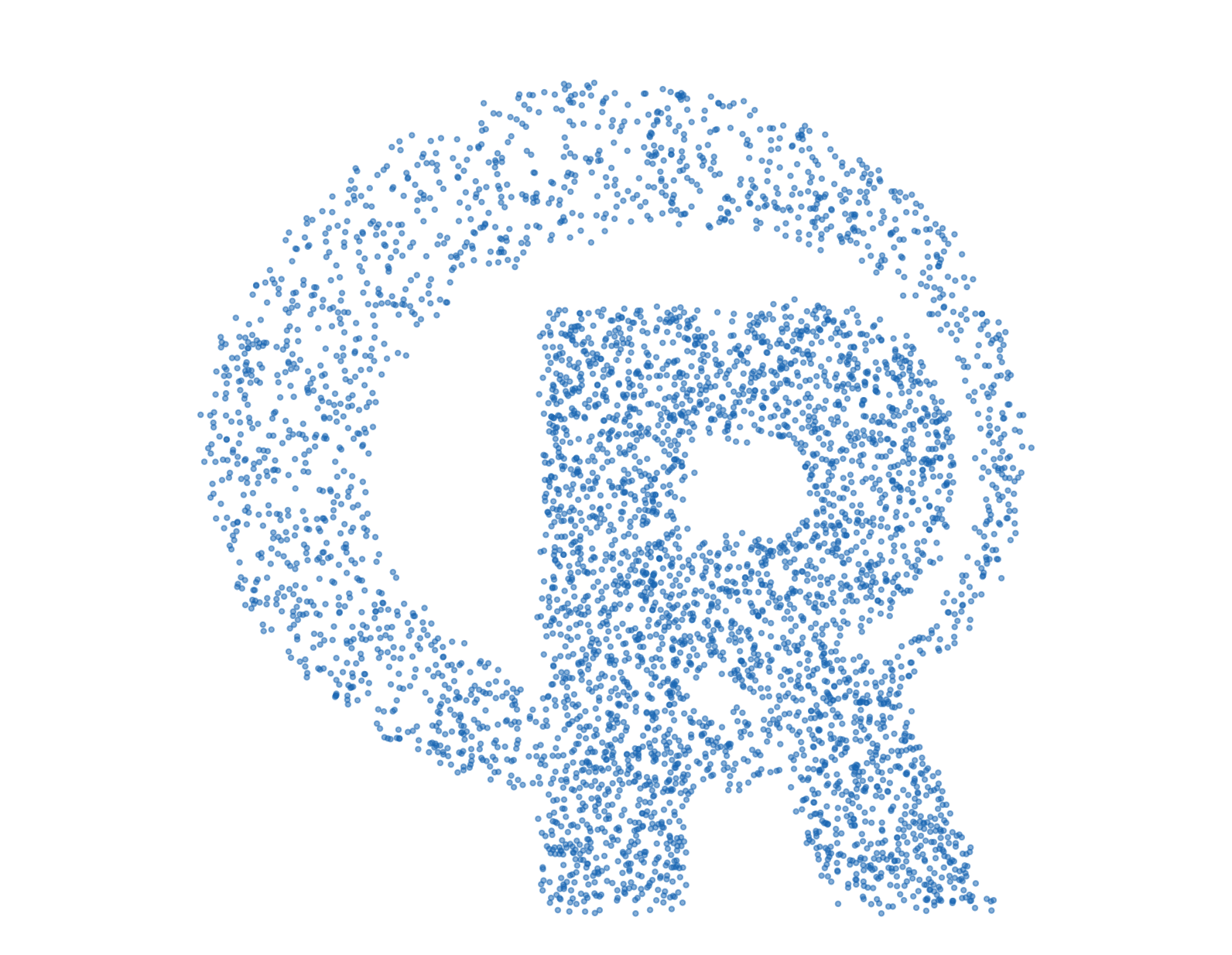 首先利用 magick 包,将 R logo 图片读入,转化为灰度图,归一化到 [-1, 1] 之间,最后再增加一些随机抖动。样子是这样的: